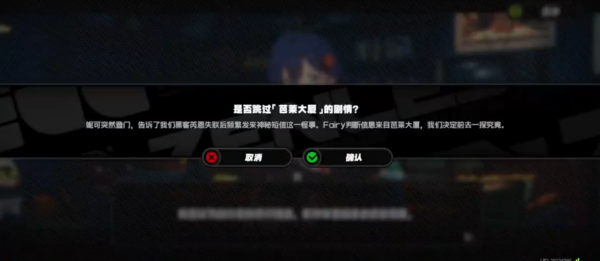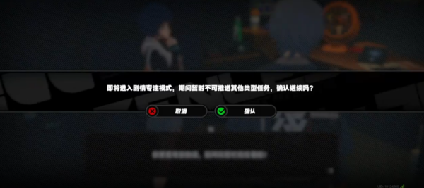3、点击图标后,游戏会弹出一个确认窗口,这是为了防止玩家误操作。点击该按钮,就能顺利退出剧情专注模式。