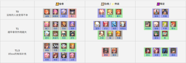 同一梯度里不分先后,只代表对萌新的推荐程度,不与角色实力划等号。
